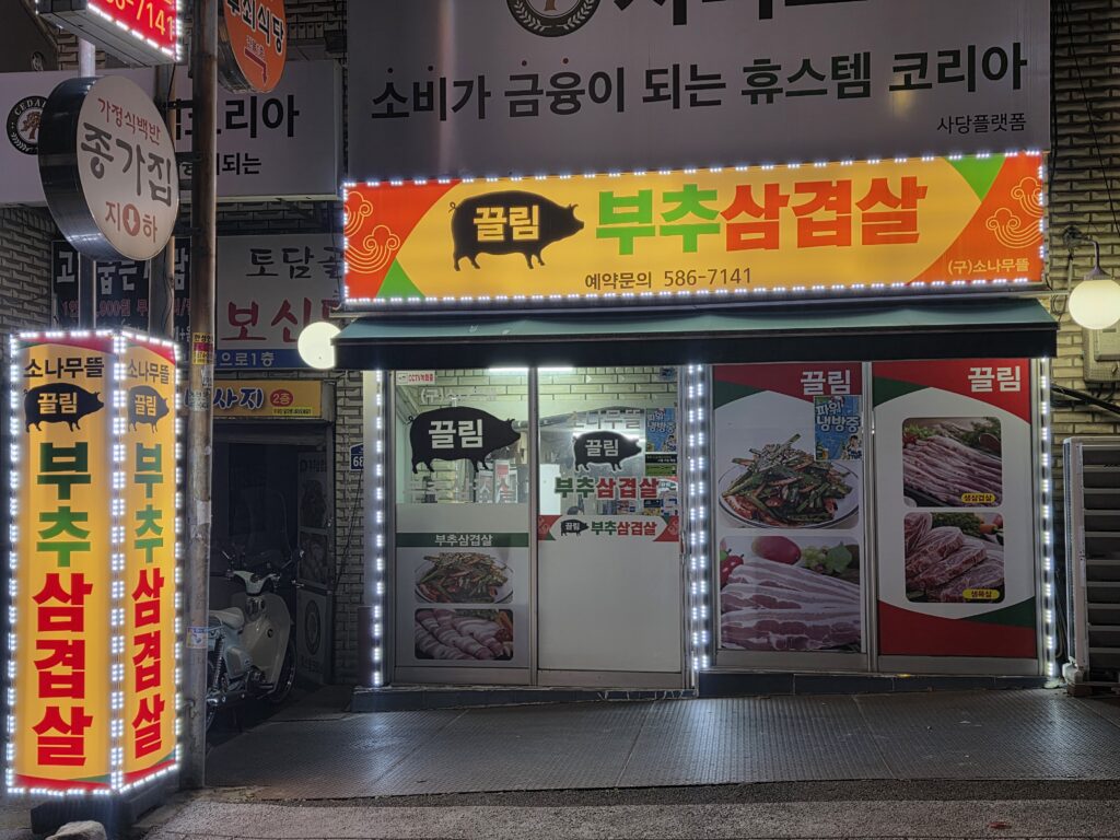 찬 바람이 불어오면 뜨거운 불판 위에 지글지글 익어가는 삼겹살 생각이 간절해지는 저녁시간 배우들이 작업 후 단백질 보충으로 가성비까지 좋은 암퇘지 전문점으로 회식의 성지이자 교통의 요지인 사당역 근처에서 찐(眞) 맛집을 찾고 계신다면, 저는 주저 없이 **’소나무뜰끌림부추삼겹살’**을 추천드립니다!