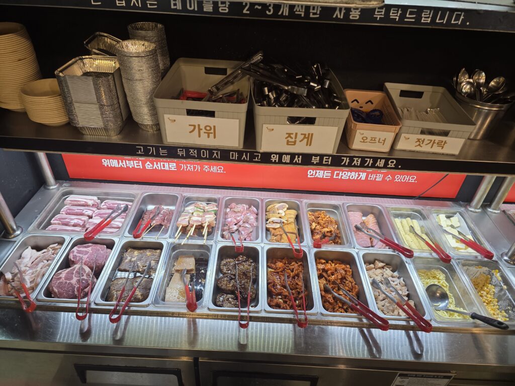 • ๊ณ ๊ธฐ ์ข…๋ฅ˜: [์‚ผ๊ฒน์‚ด, ๋ชฉ์‚ด, ๋ผ์ง€๊ป๋ฐ๊ธฐ, ์†Œ์‹œ์ง€, ๋‹ญ๊ผฌ์น˜, ์—ผํ†ต๊ผฌ์น˜] ๋“ฑ ๊ณ ๊ธฐ ์ข…๋ฅ˜๋„ ๋‹ค์–‘ํ–ˆ์Šต๋‹ˆ๋‹ค.