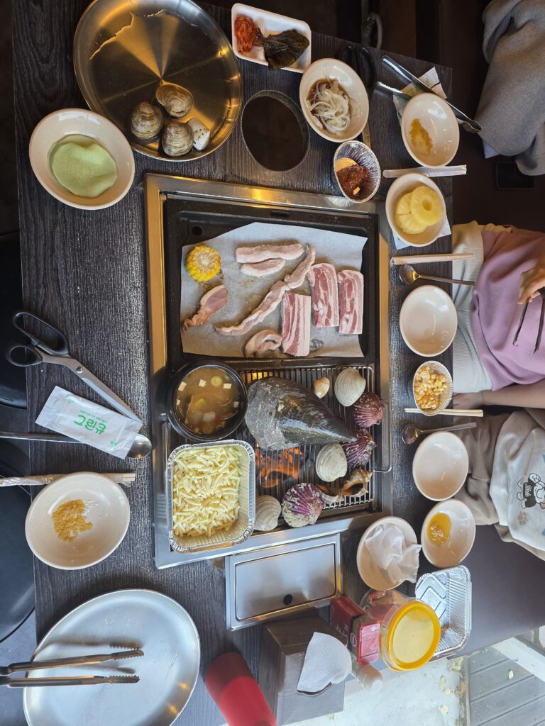 • ํ•„์ˆ˜ ์‚ฌ์ด๋“œ: [๋ผ๋ฉด, ๋–ก๋ณถ์ด, ๋งŒ๋‘] ๊ฐ™์€ ๋ถ„์‹๋ฅ˜์™€ [ํŒŒ์ฑ„, ์–‘ํŒŒ, ๋ฒ„์„ฏ] ๋“ฑ ๊ตฌ์ด์šฉ ์ฑ„์†Œ๋„ ๋ฌดํ•œ๋ฆฌํ•„์ด๋ผ ๋”ฐ๋กœ ์ฃผ๋ฌธํ•  ํ•„์š”๊ฐ€ ์—†์—ˆ์Šต๋‹ˆ๋‹ค. ํŠนํžˆ ๋งˆ๋ฌด๋ฆฌ๋กœ [๋ผ๋ฉด]์„ ๋“์—ฌ ๋จน๋Š” ๊ฒƒ์ด ๊ตญ๋ฃฐ์ž…๋‹ˆ๋‹ค!